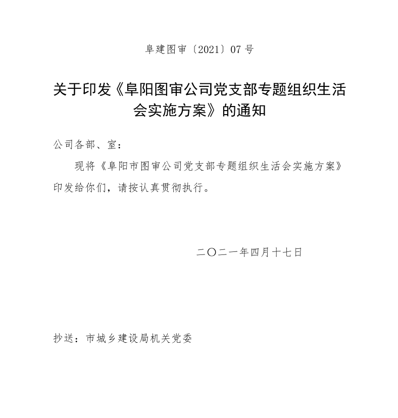关于印发《芜湖星光施工图审查公司党支部专题组织生活会实施方案》的通知